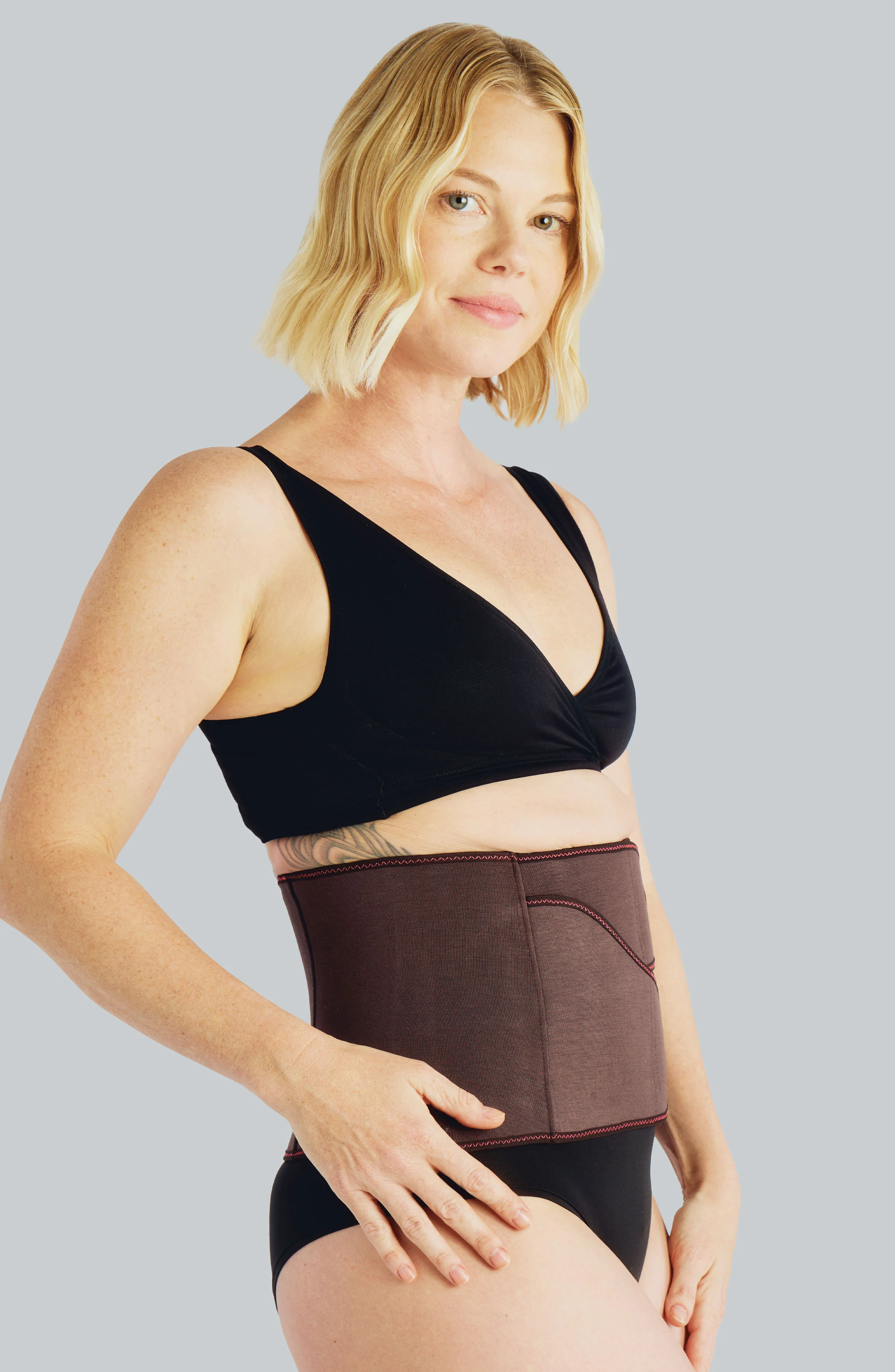 The Shortie is a latex-free, eco-friendly belly wrap with a six panel design designed to be worn post-pregnancy.